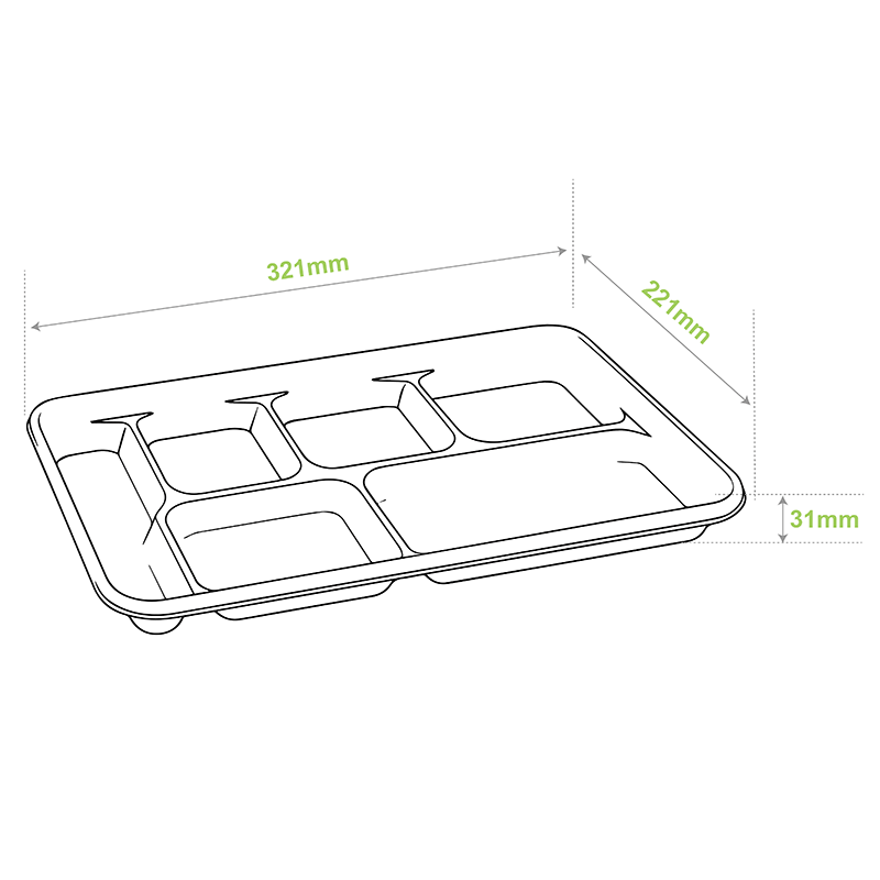 The 6-Com Shallow Bagasse Tray elevates food presentation with six precisely proportioned compartments in an elegant low-profile design. Made from renewable sugarcane fiber, this premium tray meets the demands of high-end catering and gourmet buffet service where both aesthetics and functionality are paramount.