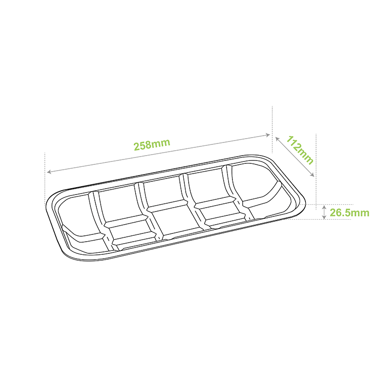 Tags compostable sushi boat, eco wasabi tray, non-slip sugarcane tray, plant fiber sushi platter, restaurant sushi display, sushi serving tray